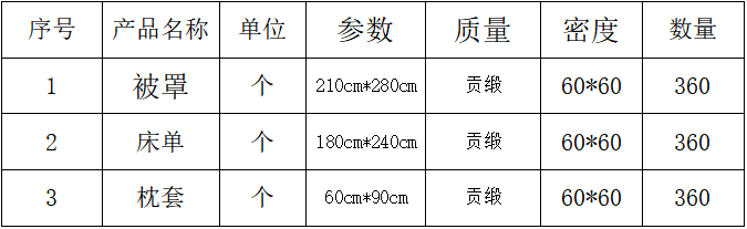②报名同时提交内蒙古电子信息职业技术学院床上用品预算报价表、床上用品样品。