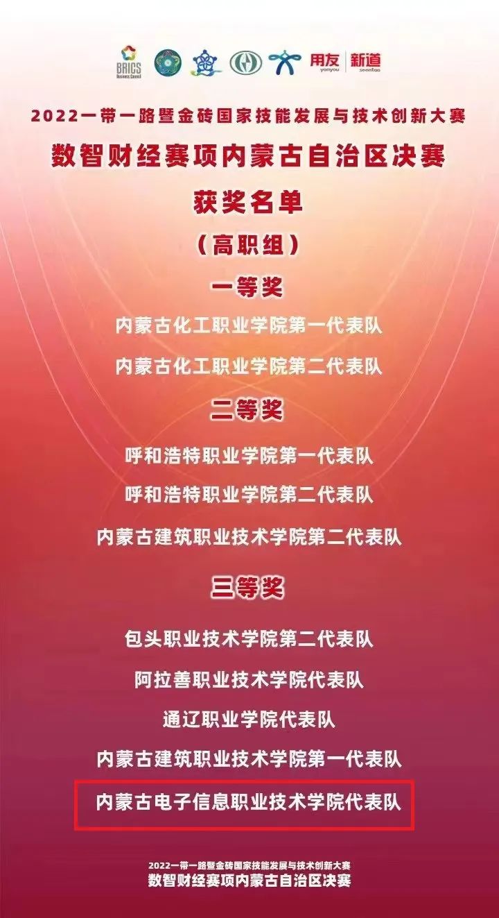 9月23日,2022一带一路暨金砖国家技能发展与技术创新大赛数智财经赛项内蒙古自治区决赛在线上成功举办。经过激烈角逐,我校代表队荣获此次比赛三等奖。 据悉,此次比赛由金砖...