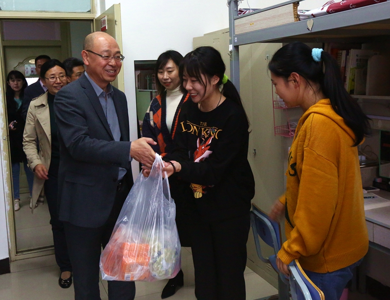 在中秋国庆双节来临之际,为了让在校的学生们感受到家的温暖,让全体师生体会到节日的快乐,9月30日,学校党委书记李向东、校长王生铁、宣传部长李占岭、党政办、学工处主要负责任人以及各二级学院党政班子走进学生宿...