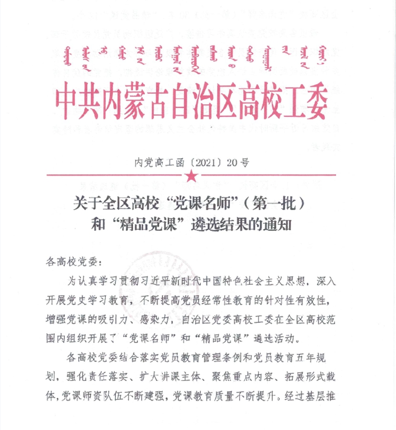 近日,为认真学习贯彻习近平新时代中国特色社会主义思想,深入开展党史学习教育,不断提高党员经常性教育的针对性有效性,增强党课的吸引力、感染力,自治区党委高校工委在全区高校范围内组织开展了“党课名师”和“...