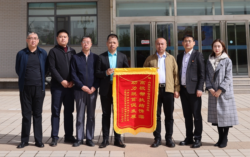 近日,内蒙古消费扶贫集采中心总经理曹志明一行人来到我校,将一面印有“高校帮扶结情深 助力脱贫促发展”的锦旗送到了学校党委委员、宣传部部长兼工会主席李占岭,餐饮中心主任周春光,餐饮中心伙食科科长崔健手里,...
