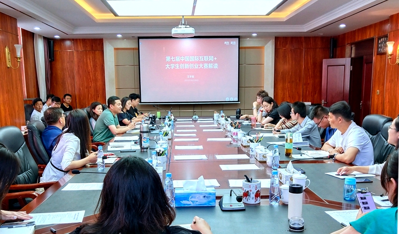 6月26日下午,学校在会议中心二号会议室召开第七届“互联网+”大学生创新创业大赛项目辅导训练营开营动员会。学校党委委员、副校长秦婷出席会议,新道内蒙古分公司总经理王学民、心物教育创业导师王新域,团委书记刘...