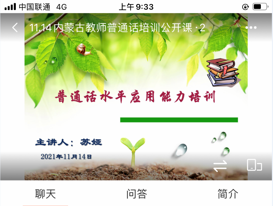 11月14号上午,全区中小学(幼儿园)教师普通话水平应用能力提升线上培训直播课程第二讲开讲。培训班邀请内蒙古农业大学苏娅教授为参训学员做题为《民族语言授课教师声母难点音辨析》的线上直播课。 ...